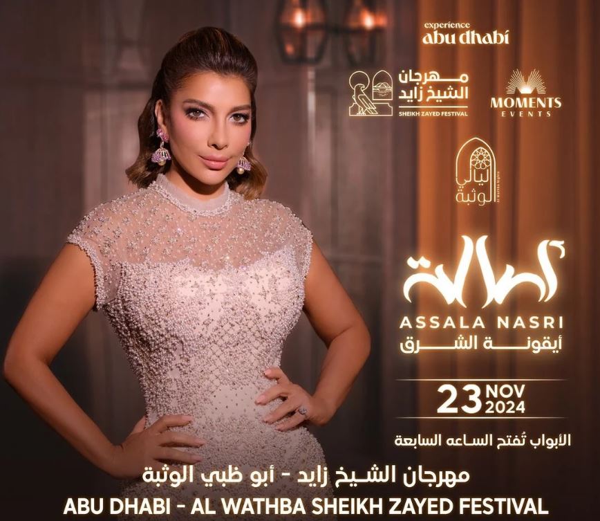 تستعد النجمة أصالة نصري، لإحياء حفل غنائي في أبوظبي الإماراتية، وذلك يوم 23 نوفمبر المقبل، ضمن فعاليات مهرجان الشيخ زايد.