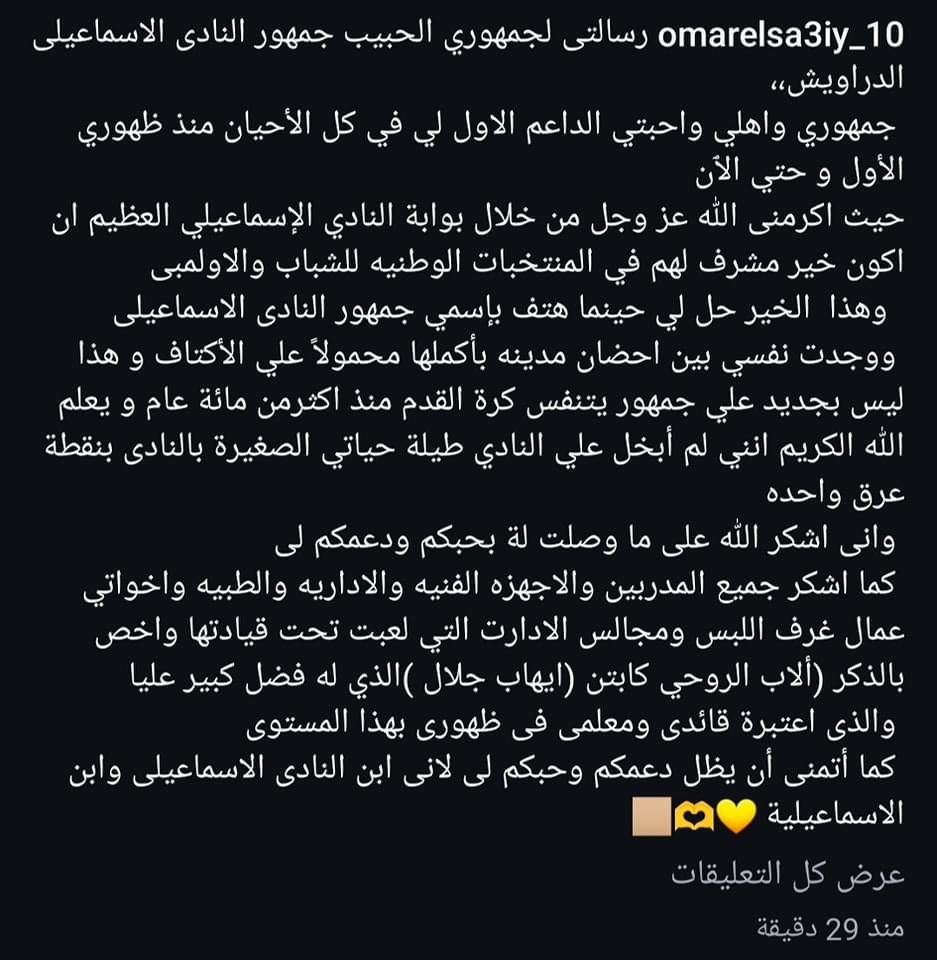 رسالة عمر الساعي لجماهير الإسماعيلي