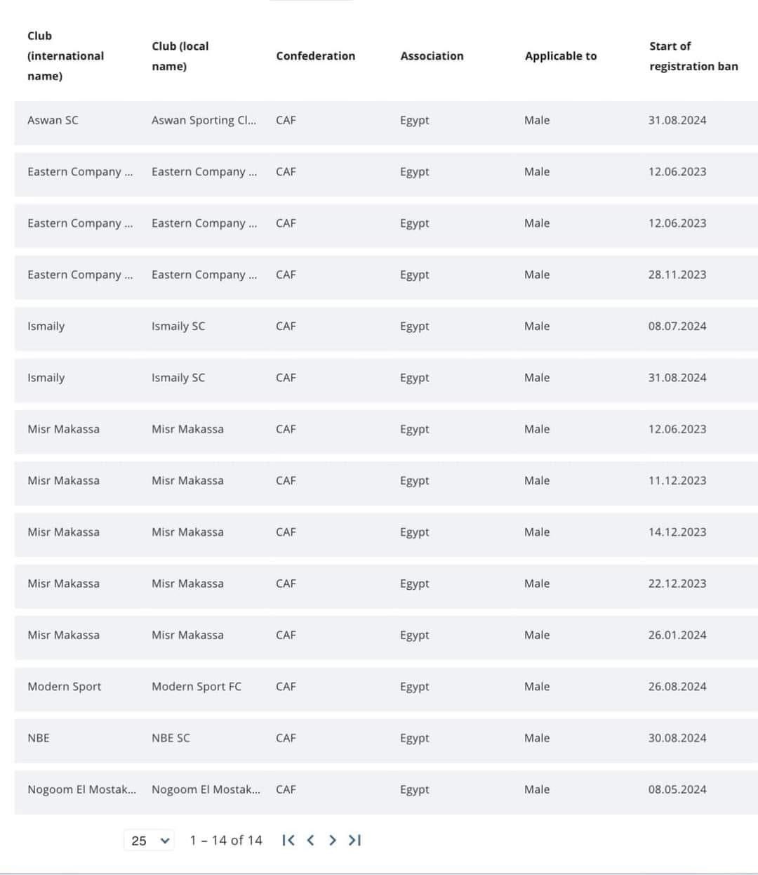 وبموجب التحديث الأخير الصادر يوم الاثنين، أصبح النادي الإسماعيلي مُلزمًا بعقوبة إيقاف قيد جديدة، وهي ليست الأولى من نوعها.