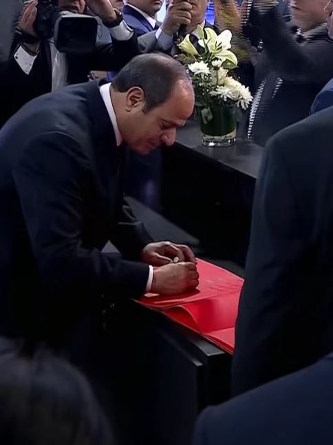 شهد الرئيس عبدالفتاح السيسي يشهد العرض الجوي على هامش معرض مصر الدولي الأول للطيران والفضاء بمطار العلمين الدولي.