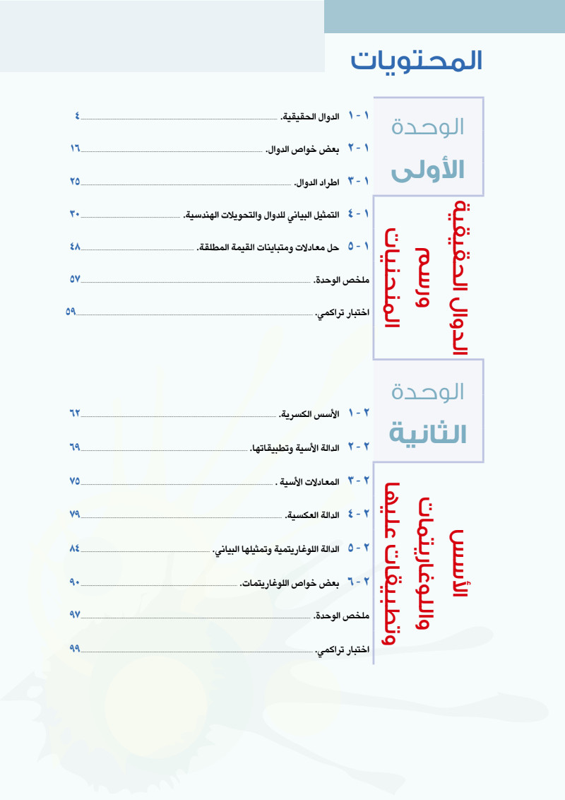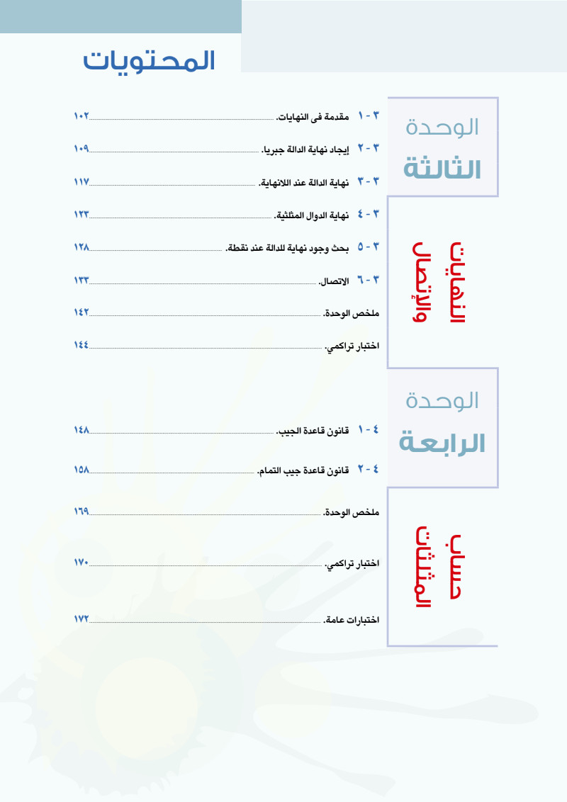 منهج الرياضيات للصف الثاني الثانوي الترم الأول علمي