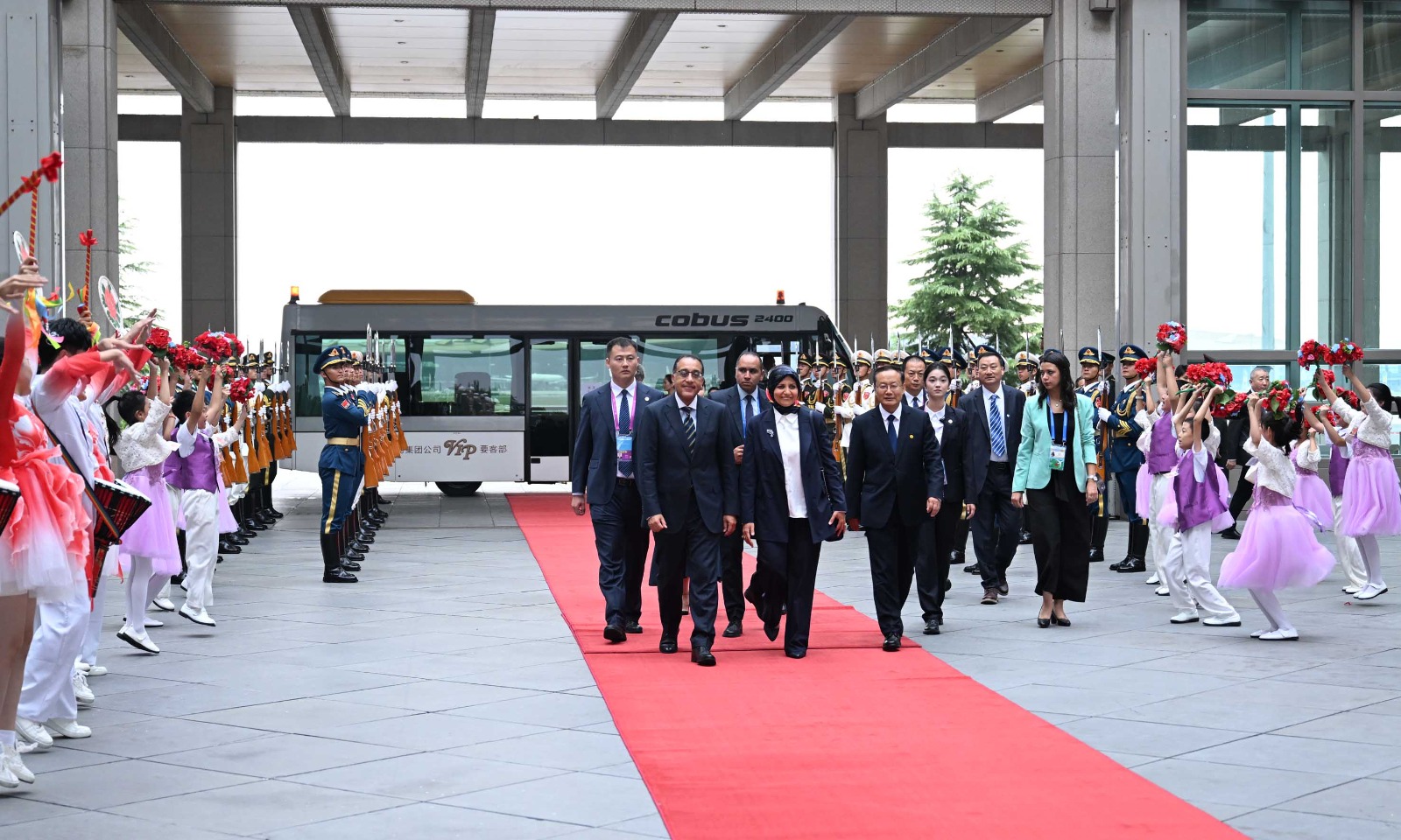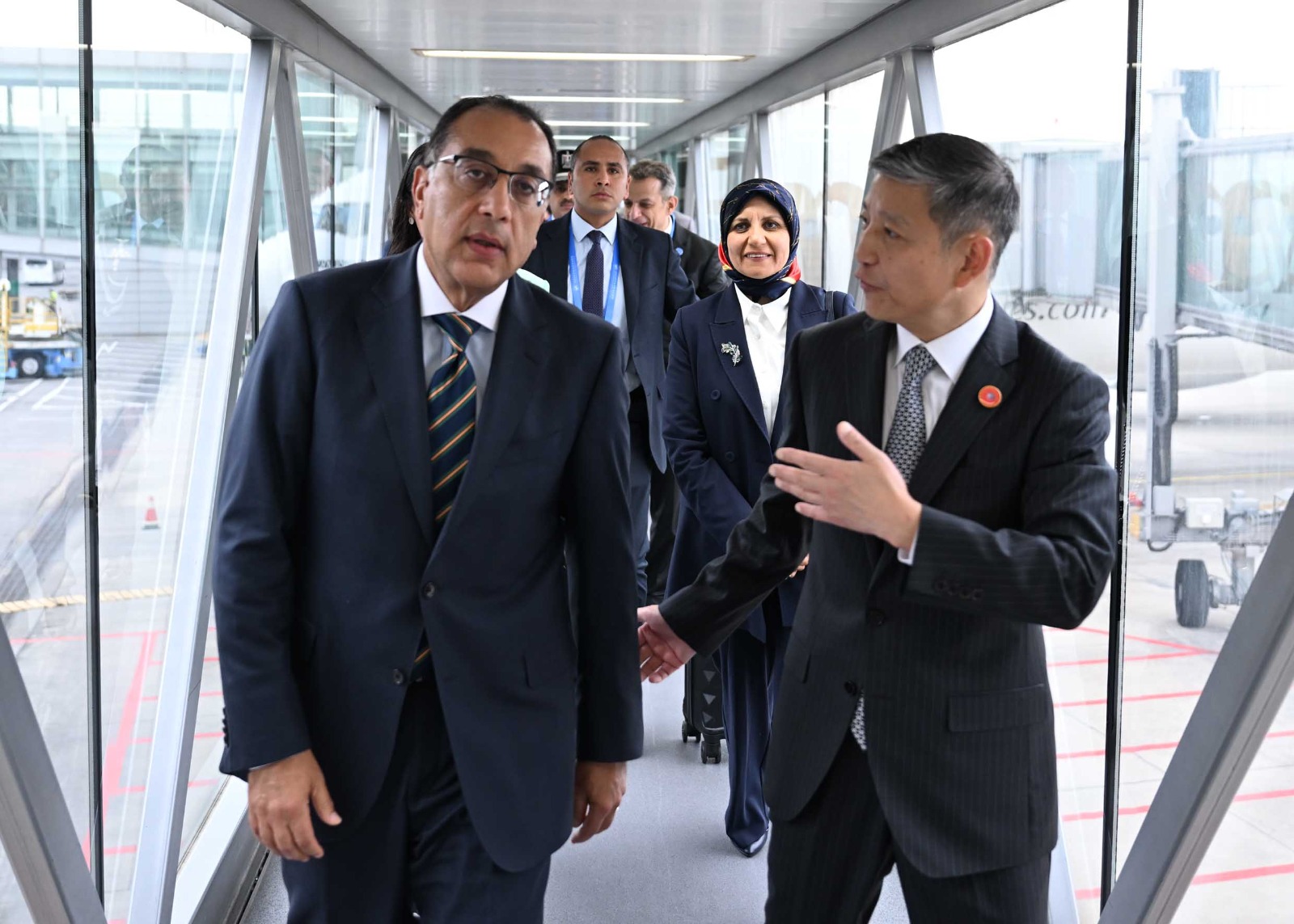 واستقبل رئيس الوزراء فور وصوله أرض المطار، كُل من Sun Yeli، وزير الثقافة والسياحة بجمهورية الصين الشعبية، والسفير عاصم حنفي، سفير مصر لدى الصين، والسفير لياو ليتشيانغ، سفير الصين لدى مصر.
