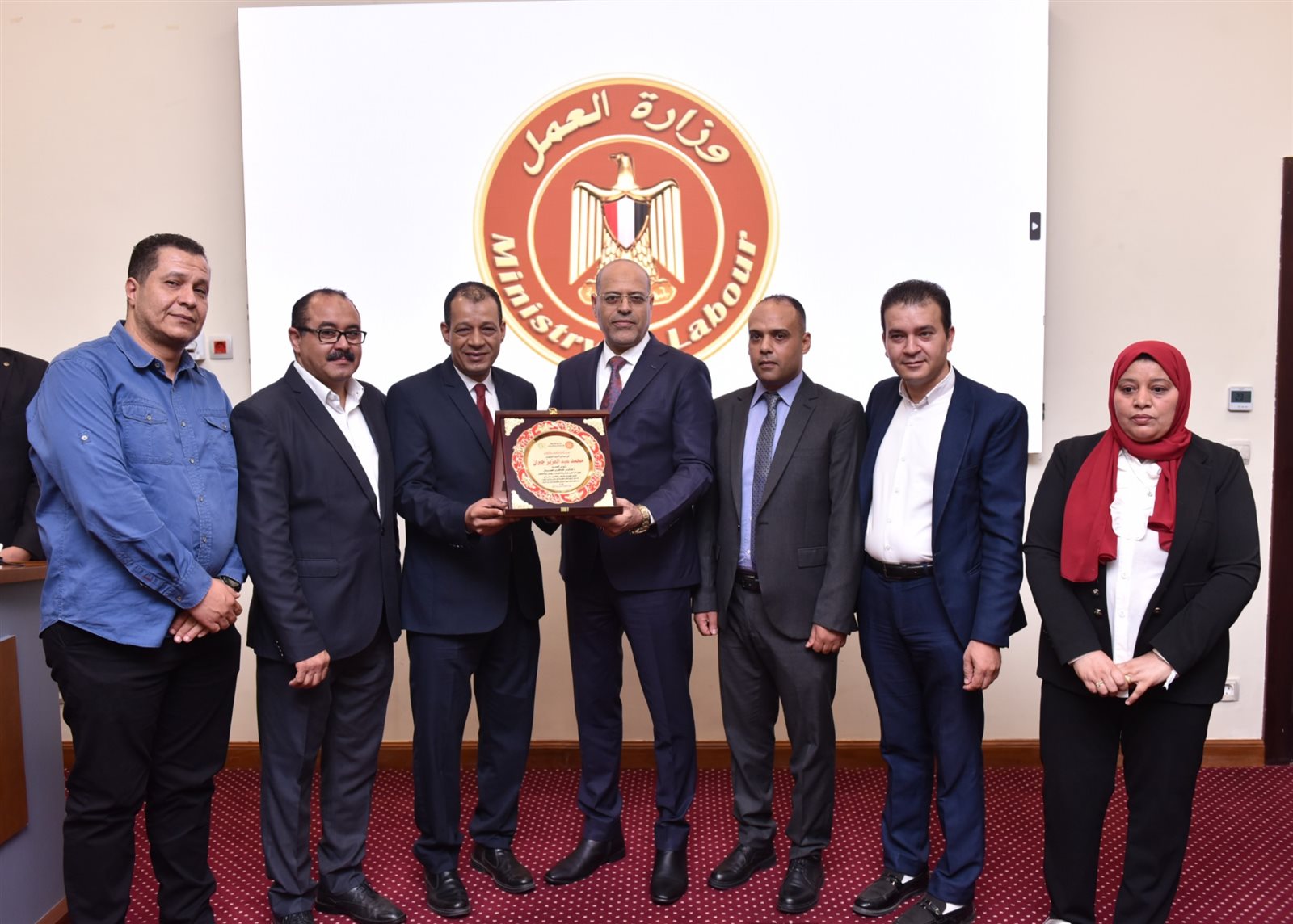 في ختام الاحتفالية أهدت اللجنة النقابية للعاملين بديوان عام الوزراة برئاسة أحمد رمضان ،درع" اللجنة "إلى الوزير محمد جبران.