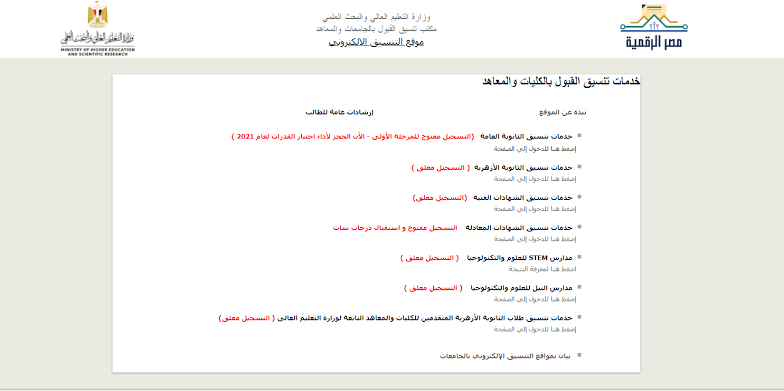 لينك موقع التنسيق الإلكتروني الثانوية العامة 2024