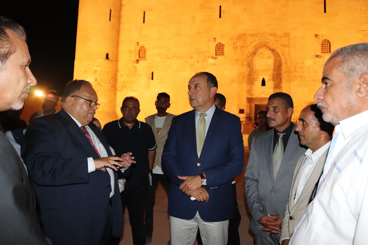 “شيمي” يتابع تجارب التشغيل لعرض "الصوت والضوء" بقلعة قايتباي بالإسكندرية
