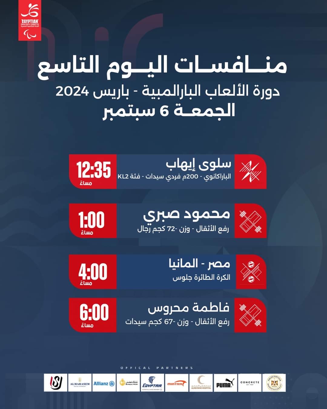 تشارك البعثة المصرية، اليوم في 3 ألعاب كالتالي: