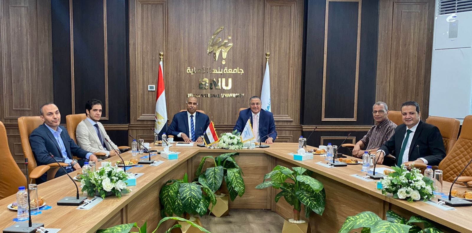 استقبل الدكتور جمال السعيد، رئيس مجلس أمناء جامعة بنها الأهلية والرئيس الشرفي لنادي أعضاء هيئة التدريس بجامعة بنها، الدكتور ياقوت السنوسي، رئيس مجلس إدارة نادي أعضاء هيئة التدريس بجامعة بنها والوفد المصاحب له وذلك بمقر جامعة بنها الأهلية بمدينة العبور.