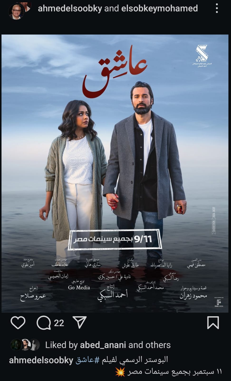 نشر السبكي البوستر الرسمي للفيلم على صفحته الرسمية عبر موقع تبادل الصور والفيديوهات "إنستجرام" وعلق قائلا: "البوستر الرسمي لفيلم عاشق، 11 سبتمبر بجميع سينمات مصر".