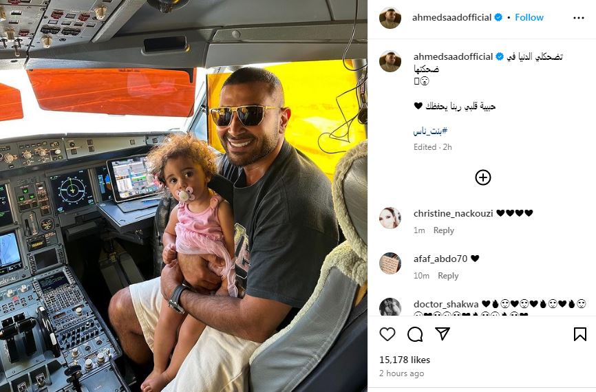 ربنا يحفظك.. أحمد سعد برفقة ابنته داخل كبينة طائرة (صور)