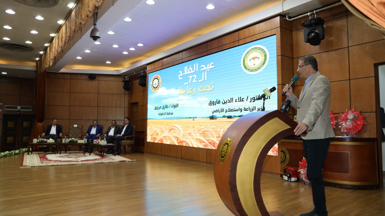 شهد علاء فاروق وزير الزراعة واستصلاح الأراضي، واللواء طارق مرزوق محافظ الدقهلية، واللواء هشام الحصري رئيس لجنة الزراعة بمجلس النواب، والمهندس عبدالسلام الجبلي رئيس لجنة الزراعة بمجلس الشيوخ، والدكتور احمد العدل نائب محافظ الدقهلية، احتفالية العيد ال ٧٢ للفلاح المصري، بقاعة الاحتفالات الكبرى بمحافظة الدقهلية.