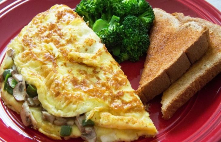 يوضع الزبد على النار فى " المقلاة " لبضع لحظات ثم يضاف اليه المشروم و يقلب جيدا، ثم تضاف جبن الشيدر المبشور ثم البقدونس و الملح، و انتظرى لدقائق حتى بتماسك البيض و يقدم دافئ.