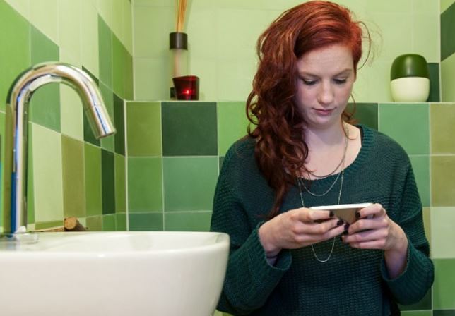 عندما يتم وضع الهاتف المحمول على منضدة الحمام أو أحد الأرفف، فإنه يلتقط البكتيريا المعدية وربما يسبب العديد من الإصابات عند استخدامه لاحقاً، و حتى إذا كان الشخص يغسل يديه باستمرار، فيجب عليه أن يقوم بتطهير هواتفه لتجنب هذا الخطر، كما يفضَّل عدم اصطحاب الهواتف إلى داخل الحمام.
