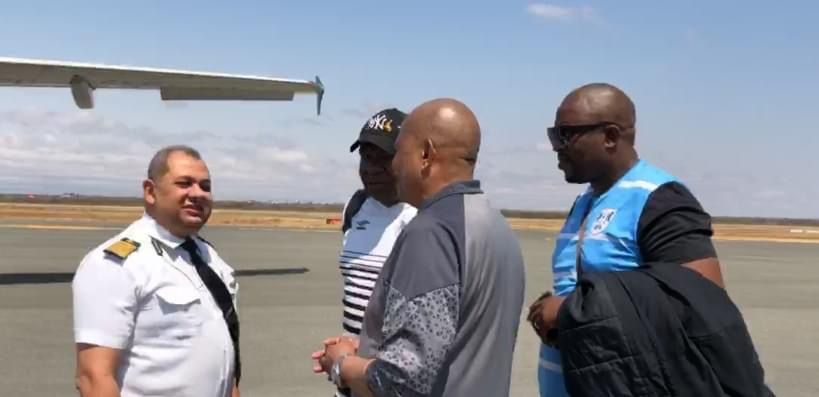 وهبطت الطائرة التي تنقل بعثة بتسوانا في مطار فيليب ماتانتي الدولي بمدينة فرانسيستوون، الذي سيكون مسرحًا لمباراة الفريقين، وقد وصل الفريق إلى المطار قبل المباراة بـ6 ساعات.