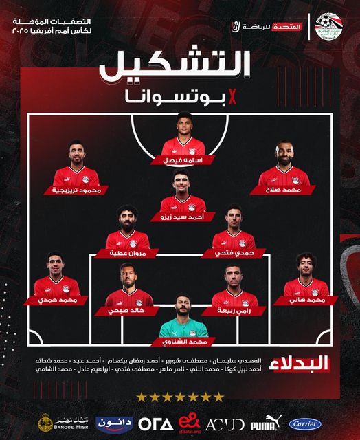 تشكيل منتخب مصر ضد بتسوانا بالتصفيات المؤهلة لنهائيات كأس الأمم الأفريقية 2025