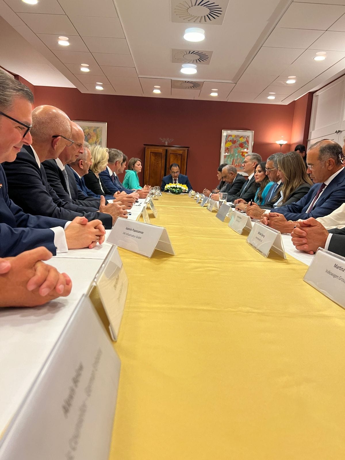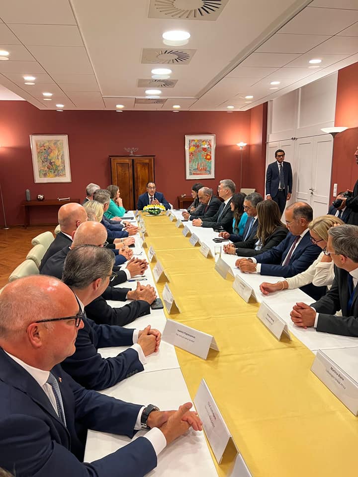 وحضر اجتماع رئيس الوزراء مع الشركات الألمانية كل من: الدكتورة رانيا المشّاط، وزيرة التخطيط والتنمية الاقتصادية والتعاون الدولي، والمهندس محمود عصمت، وزير الكهرباء والطاقة المتجددة، والمهندس كريم بدوي، وزير البترول والثروة المعدنية، والسفير خالد جلال، سفير مصر في ألمانيا، وحسام هيبة، الرئيس التنفيذي للهيئة العامة للاستثمار والمناطق الحرة.