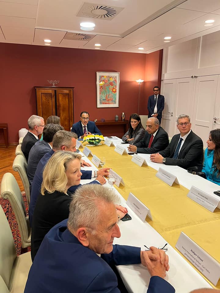 وعقب ذلك، عقد رئيس الوزراء اجتماعًا مع مجموعة من أبرز الشركات الألمانية التي تزور مصر حاليًا رفقة الرئيس الألماني، والتي يوجد لدى بعضها استثمارات قائمة بالفعل في مصر.