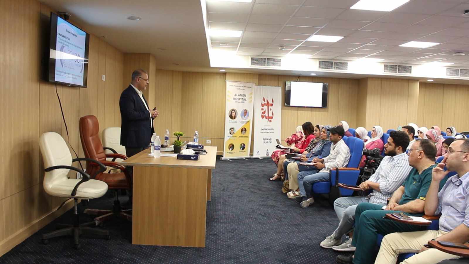 نظم مستشفى العلمين النموذجي بمدينة العلمين الجديدة، اليوم العلمي عن Basic principles of mechanical Ventilation ؛ حرصا من إدارة التدريب بالمستشفى على الاهتمام بالتعليم المستمر لرفع كفاءة الطاقم الطبى لتلبية احتياجات المرضى من خلال تقديم أفضل خدمة طبية ممكنة، والذي يعتبر البداية الحقيقية لبناء الإنسان.