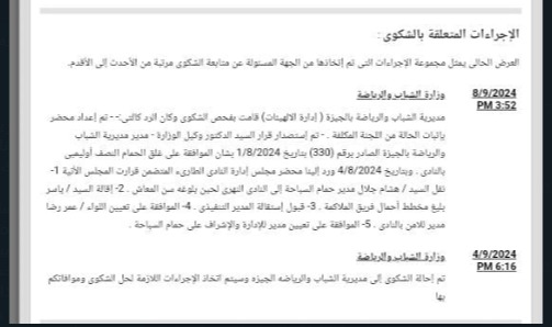 واختتم شكوته بقوله: «ومما شجعني على إرسال تلك المظلمة ما قمتم به بإرسال توجيهات بفتح تحقيقات في ملف المرحوم أحمد رفعت لاعب كورة القدم بالمنتخب الوطني، وفتح ملف الفساد الرياضي في مصر الذي أوليتموه اهتمامًا غير مسبوق، ولكونك في البداية والنهاية أبًا لكل المصريين وأب لعائلة مصرية تشعر بآلمنا وأحزاننا، وأملنا في الوصول للقصاص وكشف الفساد».