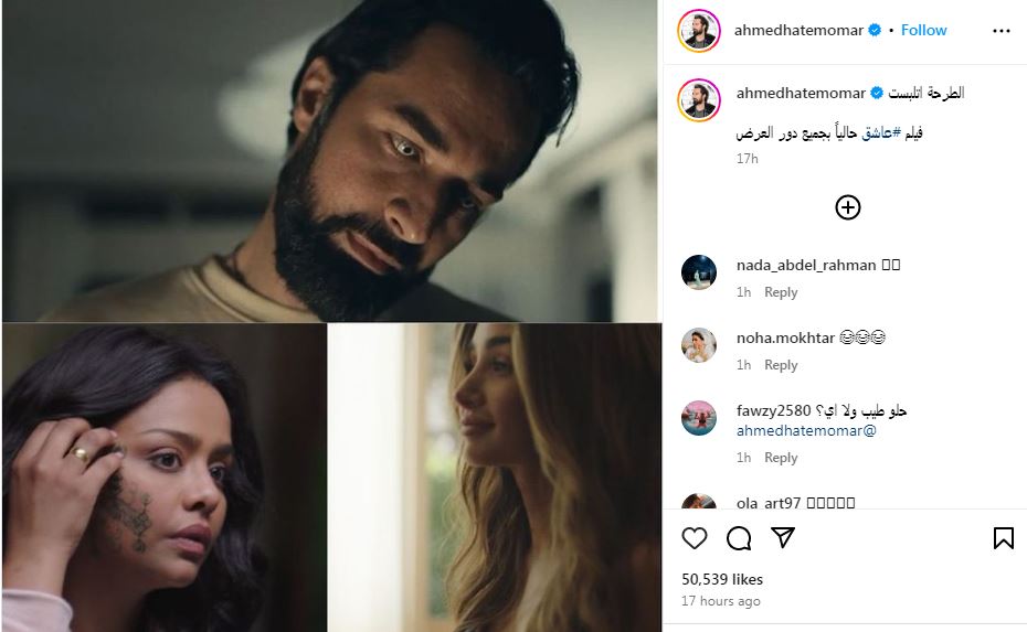بعد النجاح الذي حققه فيلم عاشق في أول أيام عرضه يواصل الفنان أحمد حاتم، الترويج لفيلم عاشق عبر حسابه الرسمي بموقع «إنستجرام»،.