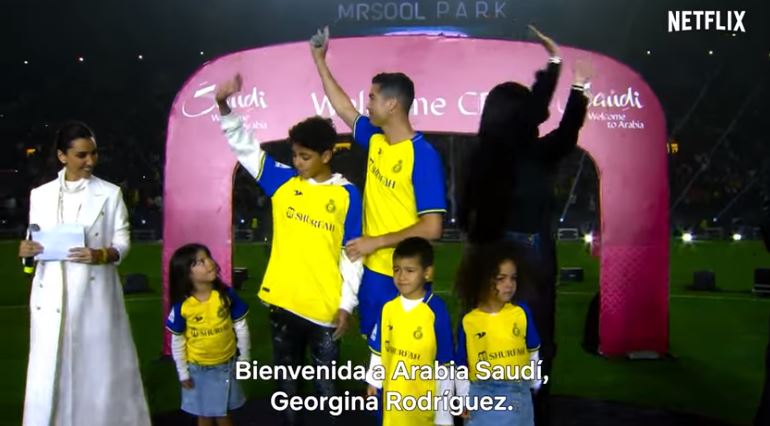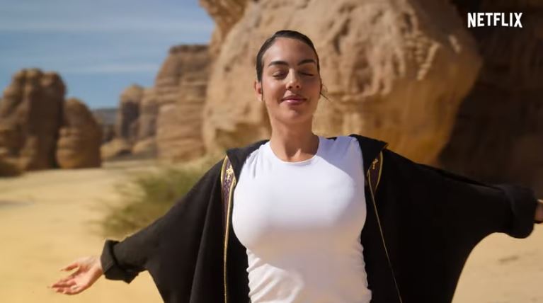 وتظهر جورجينا في الإعلان للموسم الثالث من السلسلة الوثائقية التي تتناول حياتها، في لقطات من أمام قاعة المرايا الشهيرة في العلا، وتستعيد الترحيب الحار بكريستيانو وبها، في حفل تقديمه لجماهير نادي النصر السعودي.