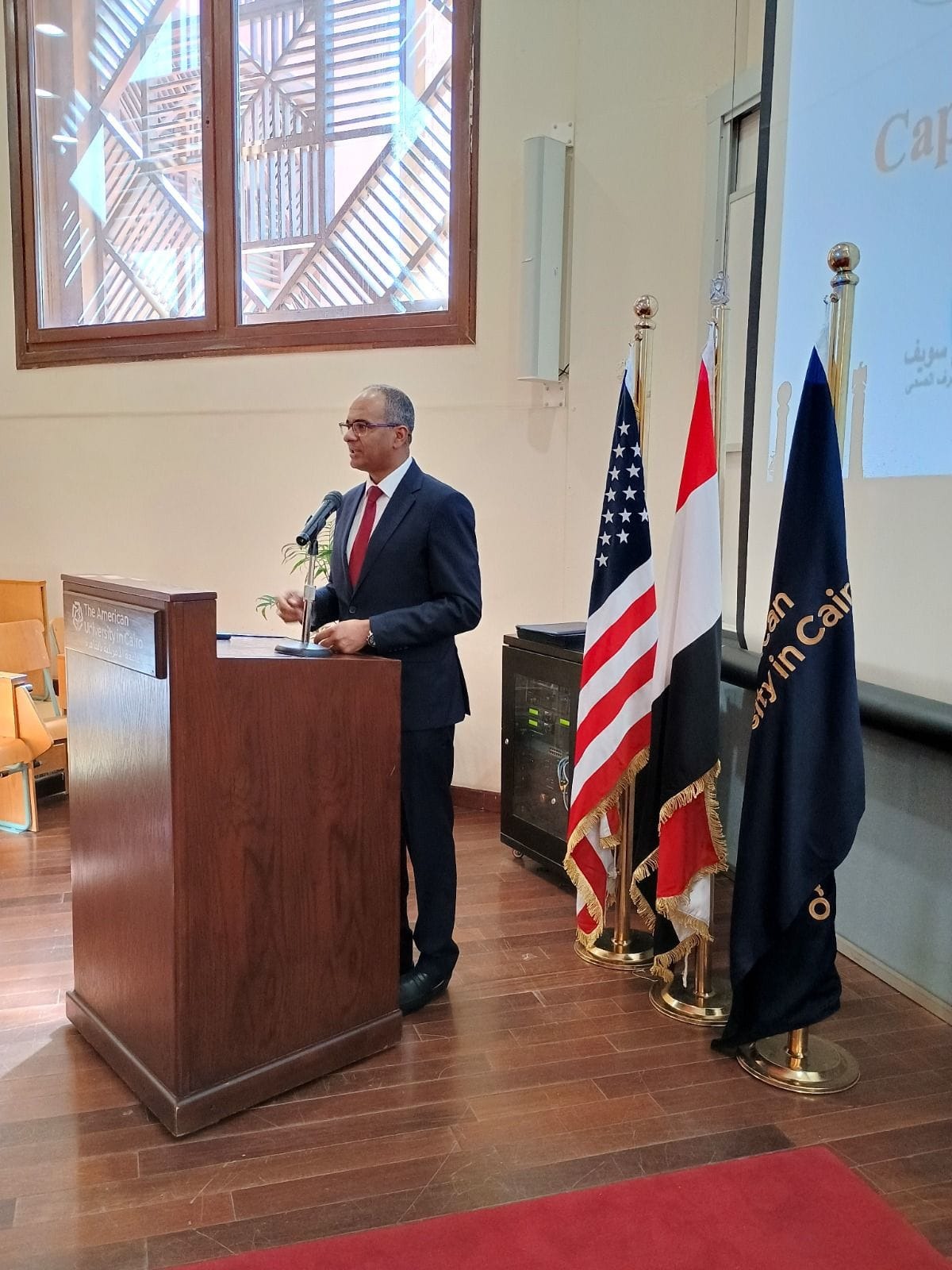بدوره، أكد الدكتور لطفى جعفر، عميد كلية العلوم والهندسة بالجامعة الأمريكية بالقاهرة، على تحقيق أقصى استفادة من نتائج البرنامج التدريبي فى مجالات الممارسات الخاصة بإدارة العقود وإدارة مشروعات التشييد والبناء، وذلك من خلال التبنى المستمر لما تم تعلمه وتطبيقه خلال فترة التدريب.