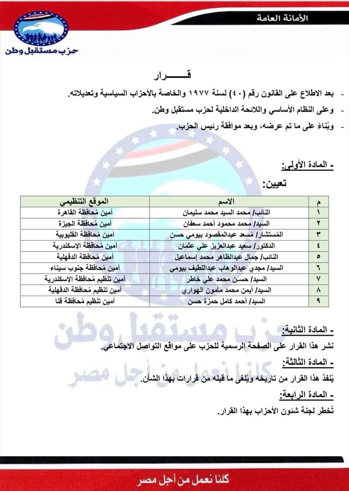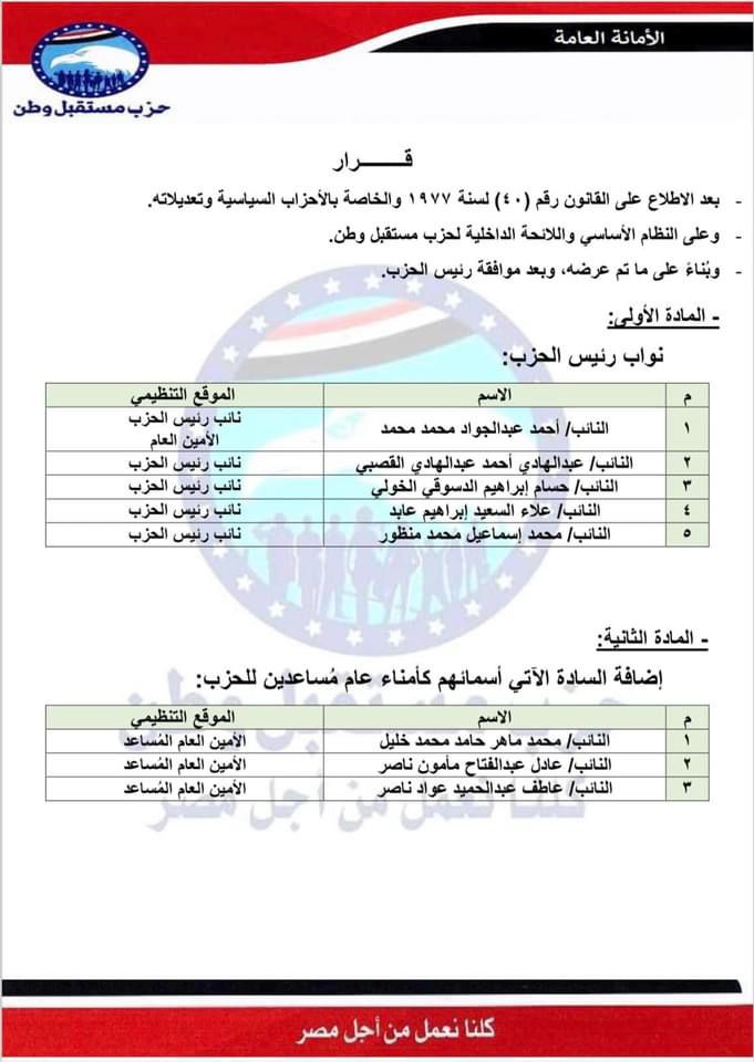 تشكيل حزب مستقبل وطن الجديد