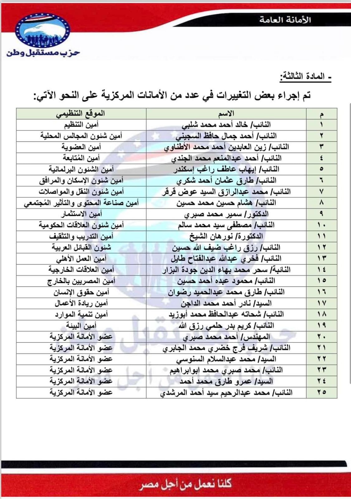 بالأسماء.. التشكيل الجديد للهيئة العليا لحزب مستقبل وطن