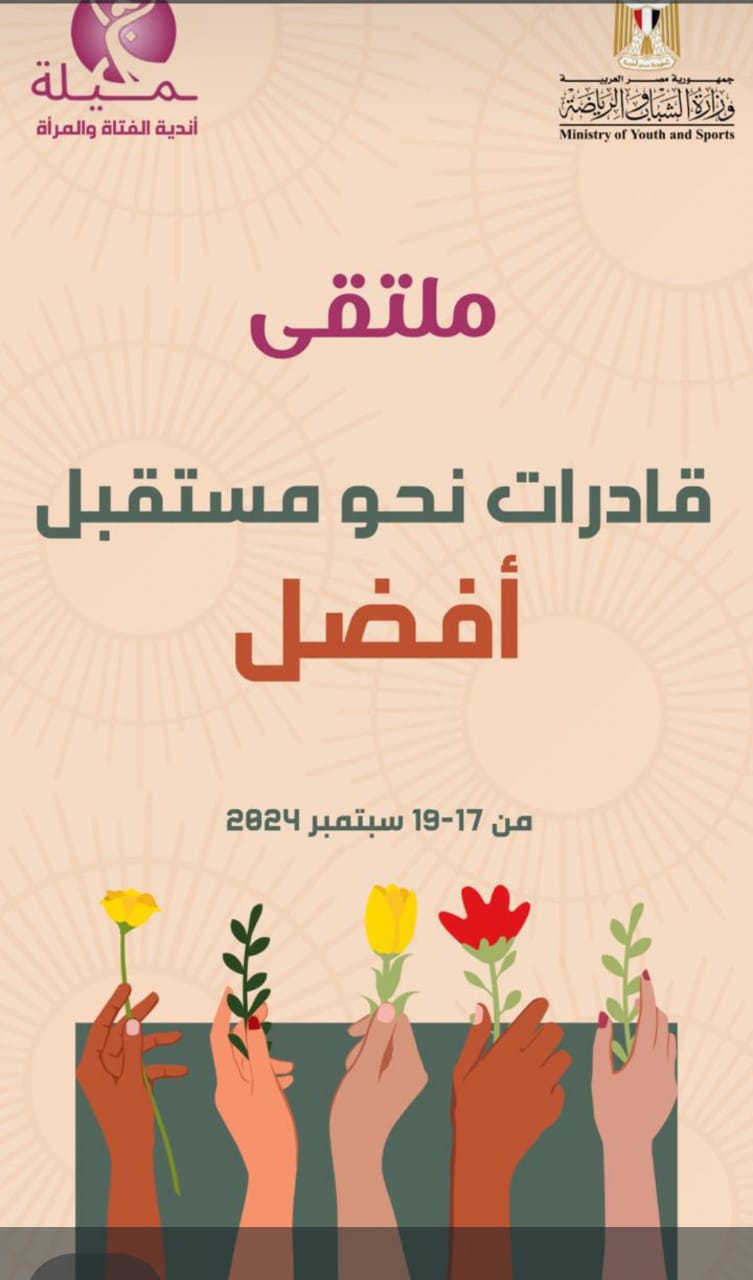 تطلق وزارة الشباب والرياضة، من خلال الإدارة المركزية لتنمية الشباب، الجلسة الافتتاحية لملتقي "قادرات نحو مستقبل أفضل" غداً، بدار ضباط المدرعات ، وذلك بحضور الدكتور أشرف صبحى وزير الشباب والرياضة، وبمشاركة ٢٥٠ فتاة من عضوات أندية الفتاة والمرأة بمراكز الشباب على مستوى محافظات الجمهورية.