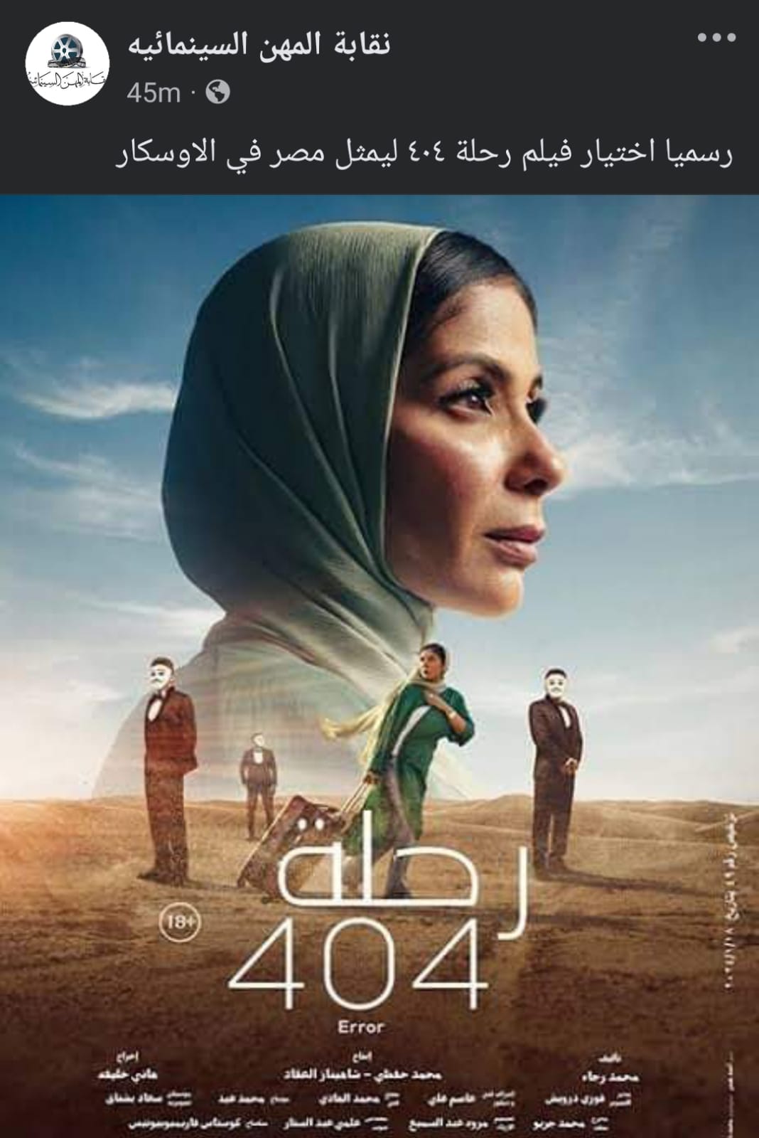 أعلنت نقابة المهن السينمائية عن ترشيح فيلم "رحلة 404" بطولة الفنانة منى زكي لتمثيل مصر في جائزة الأوسكار 2024، حيث قالت النقابة في في بيانها إن الفيلم أختير من قبل لجنة مشكلة من السينمائيين والنقاد المستقلين، مرشحا مصريا، وذلك بعد فوزه بأغلبية التصويت بين قائمة قصيرة ضمت مجموعة من الأفلام.