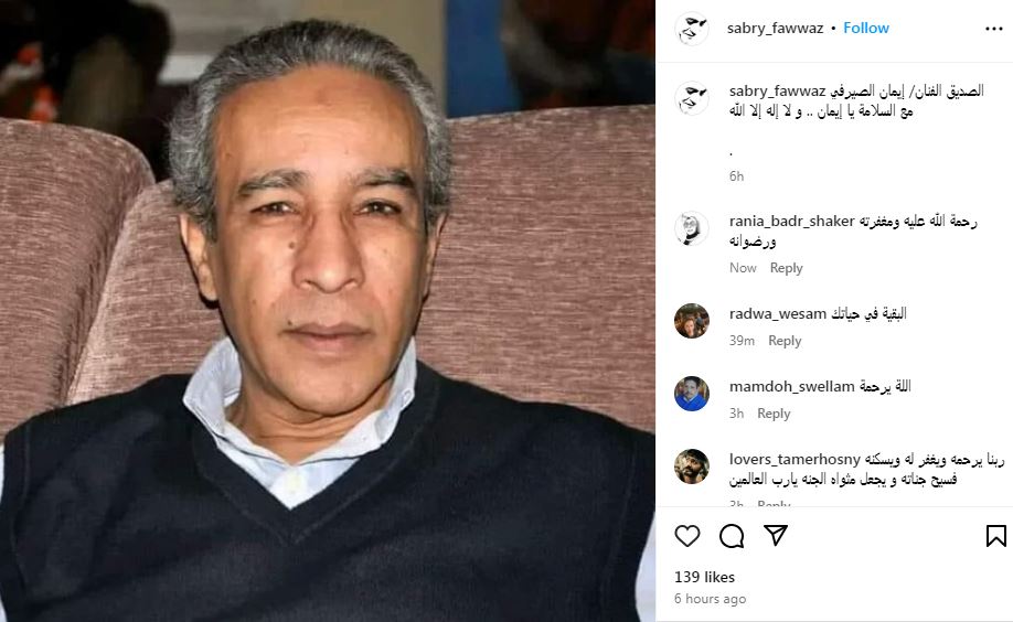 ونشر صبري فواز عبر حسابه على موقع التواصل الاجتماعي «إنستجرام»، صورة الراحل إيمان الصيرفي، وعلق: «الصديق الفنان/ إيمان الصيرفي، مع السلامة يا إيمان، ولا إله إلا الله».