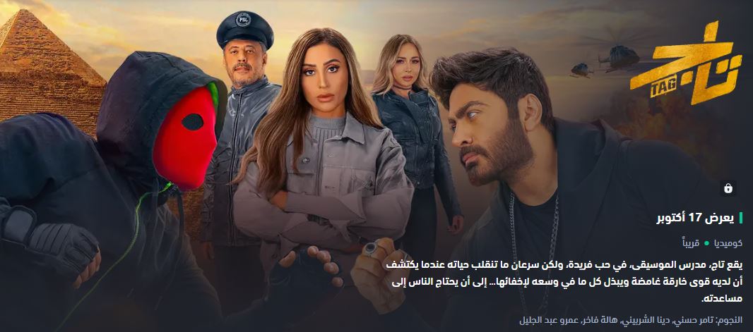 أعلنت منصة شاهد vip عن طرح فيلم تاج للنجم تامر حسني ودينا الشربيني يوم 17 أكتوبر المقبل .