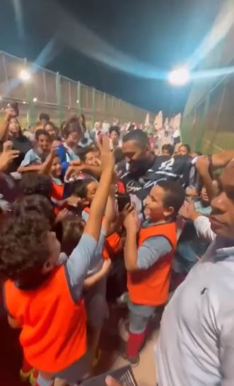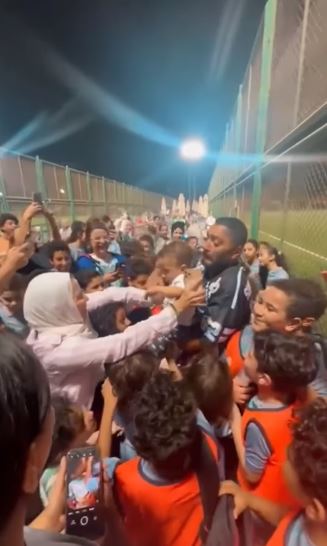 تعرض النجم تامر حسني لموقف كوميدي أثناء زيارة نجله آدم بإحدى مباريات كرة القدم .
