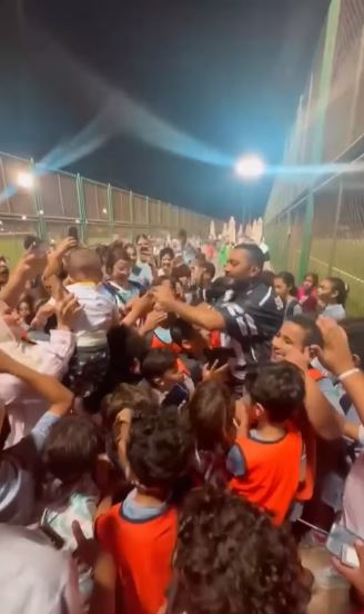 ونشر تامر حسني مقطع فيديو ظهر خلاله وهو يقوم بزيارة نجله في الملعب وفوجئ تامر حسني بتجمهر الأطفال حوله لالتقاط الصور معه، وحرص على تلبية طلبهم ويمازحهم وعلق تامر على الفيديو : "آدم كان عنده ماتش مهم وكلنا في البيت روحنا نشجعه والكابتن المدرب اتفق مع الولاد والفرقتين لما تامر يجي عايزين هدوء، طبعًا أحلى هدوء زي ما انتوا شايفين، ربنا يحفظهم حبايب قلبي الكتاكيت".