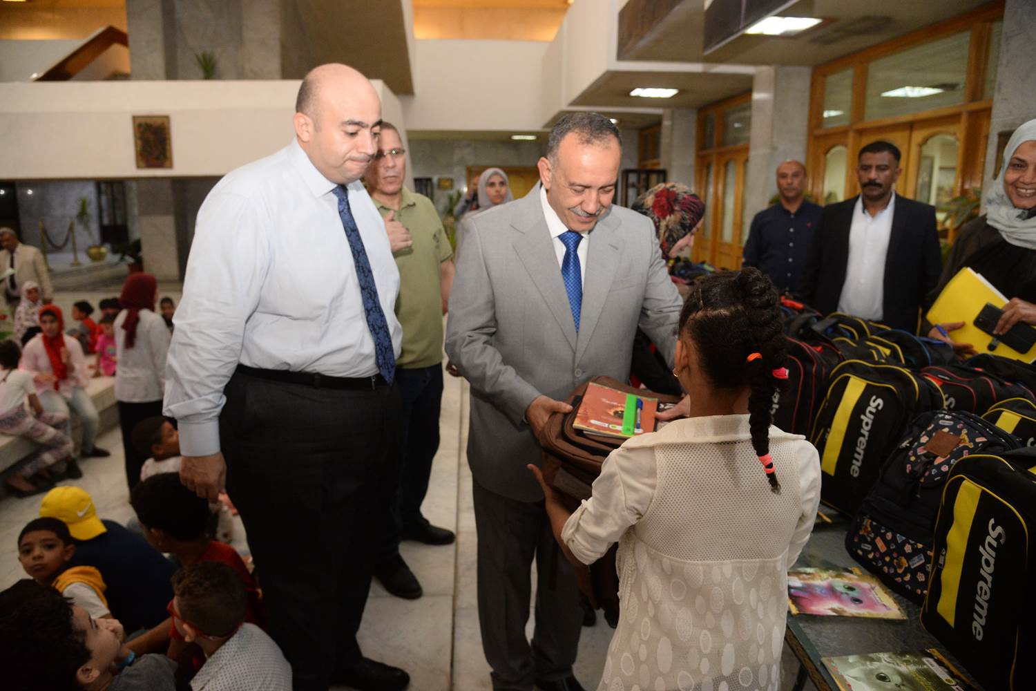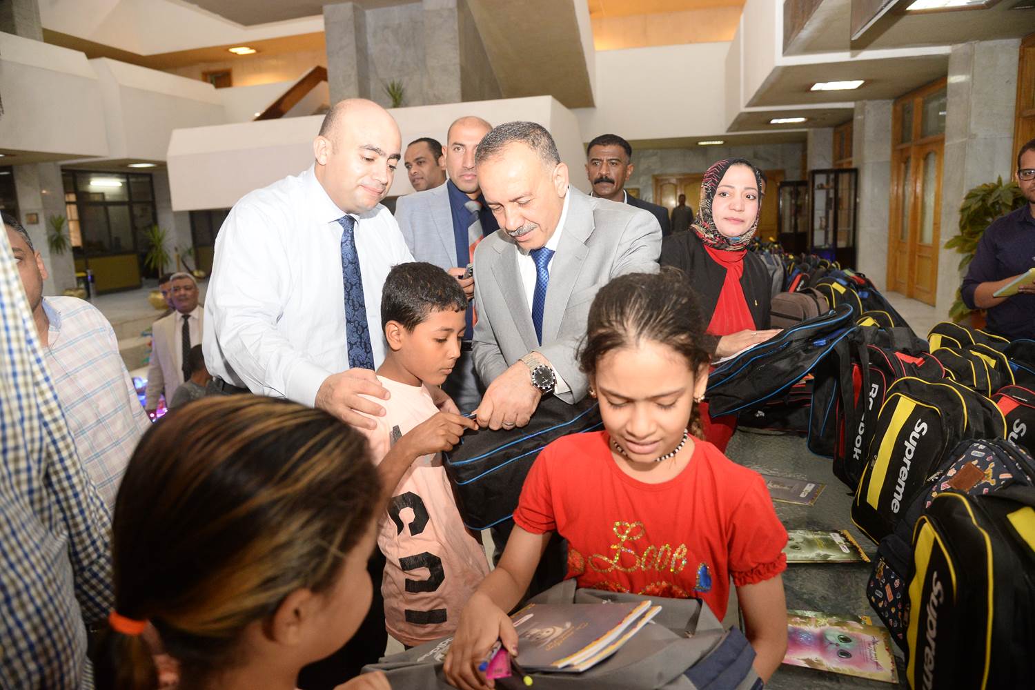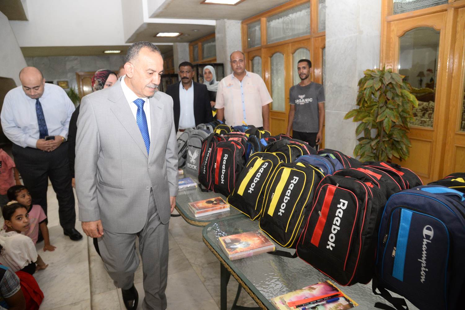 محافظ أسيوط يشهد تسليم شنط مدرسية للطلاب الأولى بالرعاية