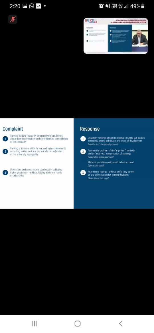 شاركت جامعة دمنهور في ورشة العمل الأولى عبر الإنترنت حول نظام التصنيف والتقييم العالمي للجامعات في مجموعة البريكس، جاء ذلك تحت رعاية الأستاذ الدكتور إلهامي ترابيس رئيس جامعة دمنهور.