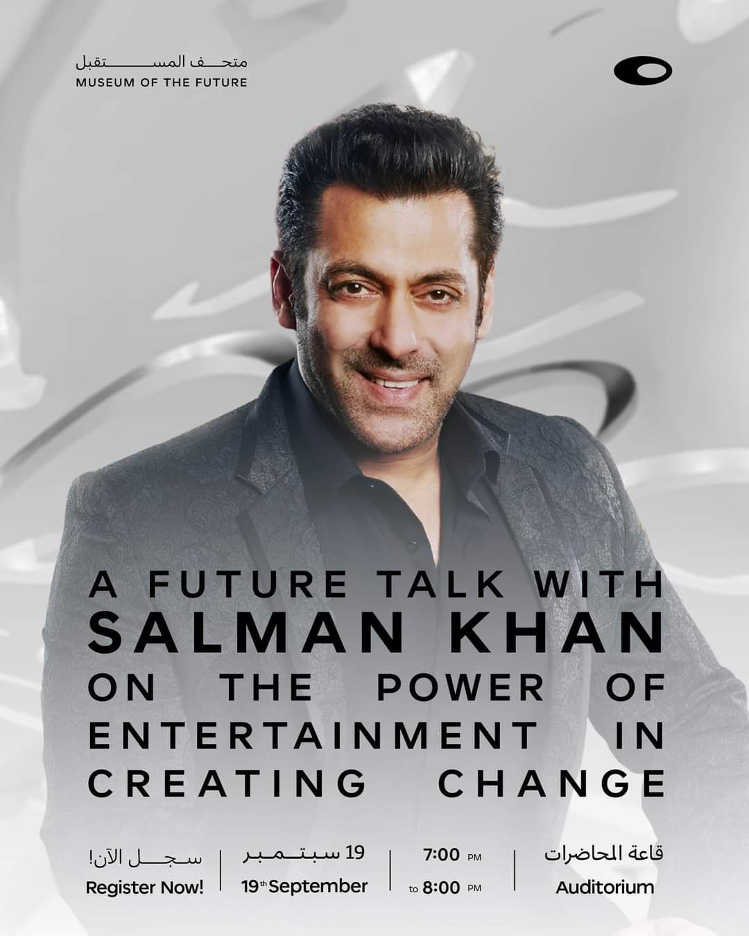 يستعد النجم الهندي سلمان خان للتواجد غدا الخميس 19 سبتمبر الجاري بمتحف المستقبل في الإمارات وذلك لحضور جلسة حوارية ضمن سلسلة "حوارات المستقبل" .