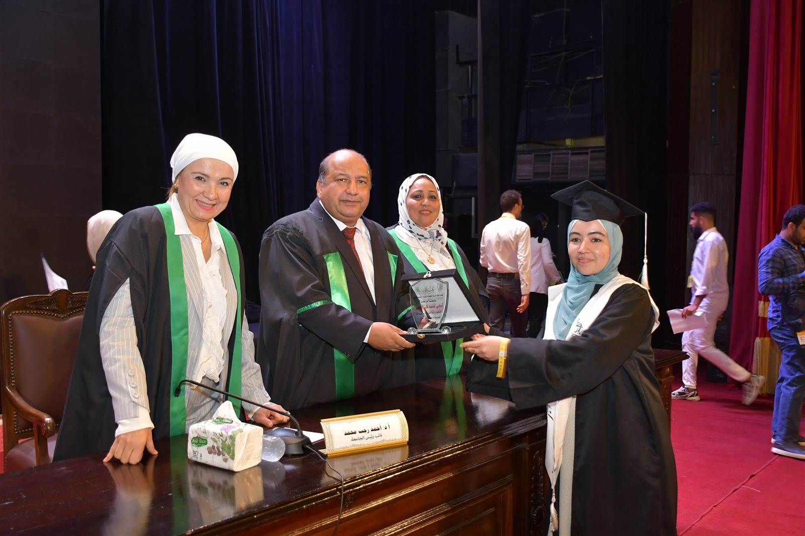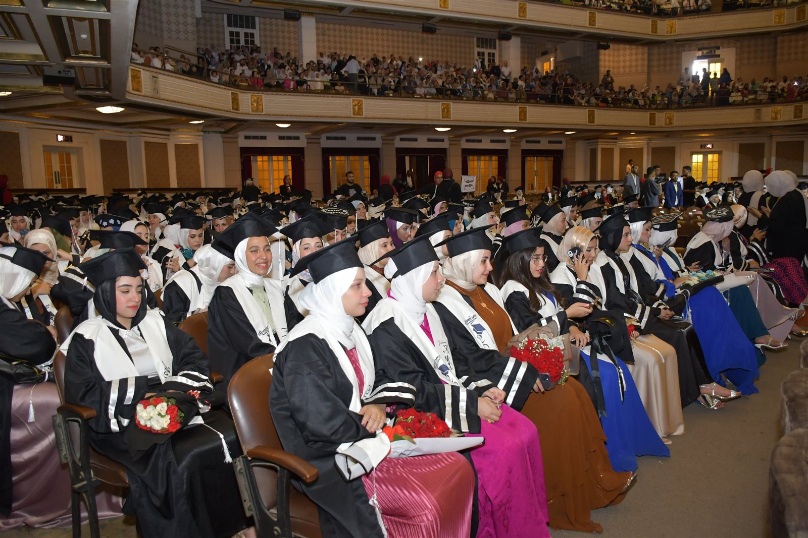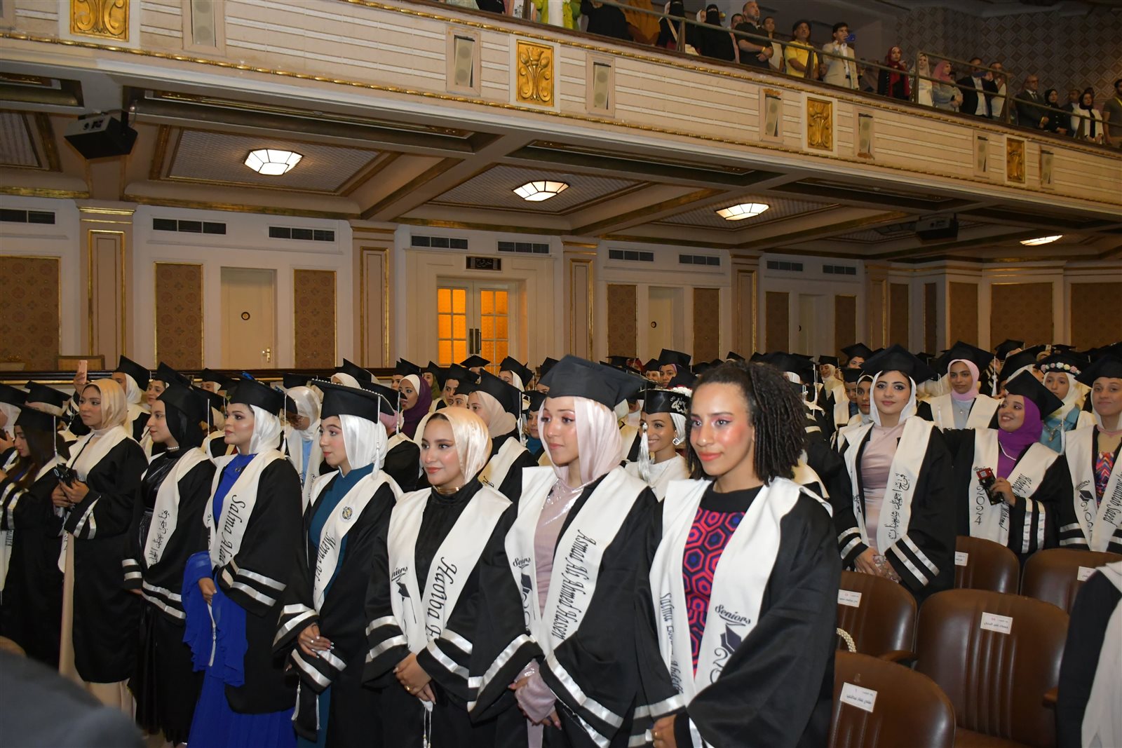 وبدأت مراسم الاحتفال بالتقاط صورة جماعية للخريجين أمام قبة الجامعة، ثم السلام الجمهوري وتلاوة آيات من القرآن الكريم، تلتها كلمة أوائل الخريجين، ثم كلمة عميدة الكلية، واختُتمت بكلمة نائب رئيس الجامعة لشؤون التعليم والطلاب.