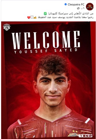 ونشر نادي سيراميكا كليوباترا عبر حسابه الرسمي على موقع التواصل الاجتماعي فيسبوك صورة ليوسف سيد عبد الحفيظ وكتب: من النادي الأهلي إلى سيراميكا كليوباترا.. رحبوا معنا بلاعبنا الجديد يوسف سيد عبد الحفيظ.