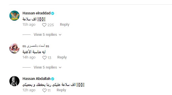 وظهر زوج إيمي سمير غانم في التعليقات علي الفيديو، وكتب النجم حسن الرداد على الفيديو: "ألف سلامة".