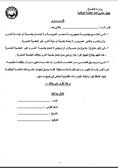 - تقديم فيش وتشبيه موجه لجهاز مشروعات الخدمة الوطنية.