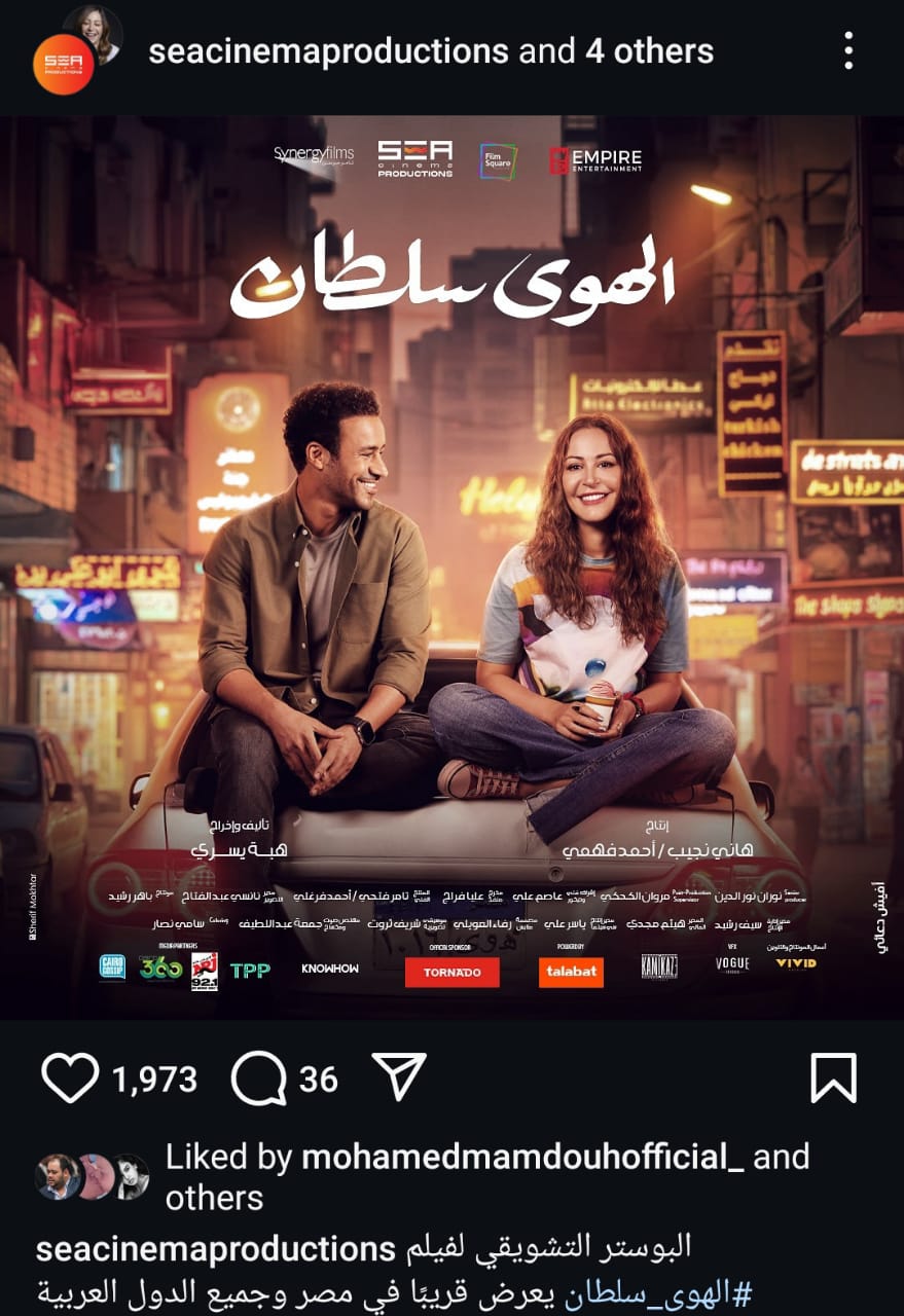 وفي وقت سابق، أعلنت شركة "سي سينما برودكشنز"، عن انتهاء تصوير فيلم "الهوى سلطان"، استعدادًا لعرضه بدور العرض السينمائية في موسم الصيف.