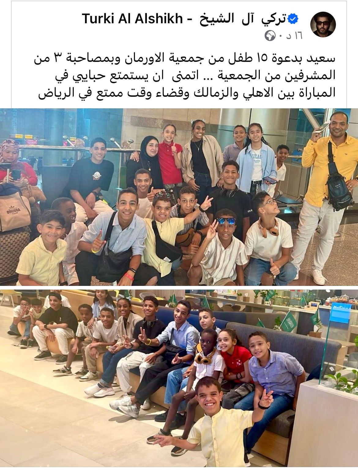 تركى آل الشيخ يدعو 15 طفل من جمعية الأورومان لحضور مباراة كأس السوبر الإفريقي