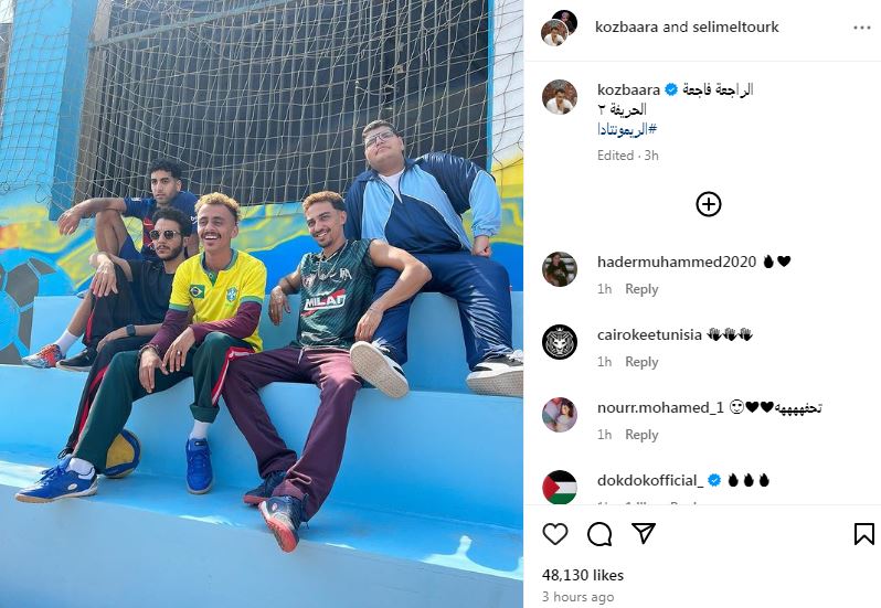 شارك المطرب أحمد بحر، الشهير بـ "كزبرة" متابعينه صورة من من كواليس فيلم الحريفة 2 عبر حسابه الرسمي بموقع تداول الصور والفيديوهات “إنستجرام”.