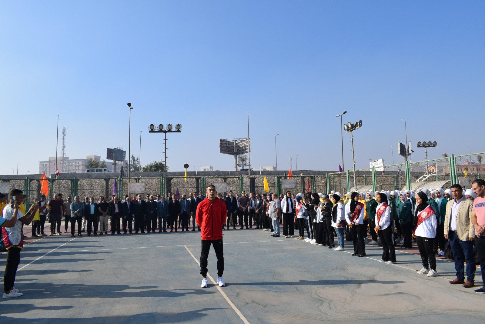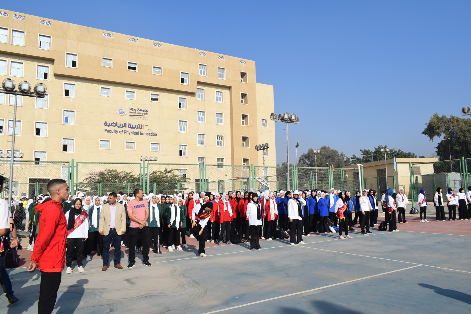 رئيس جامعة بنها يتفقد سير العملية التعليمية بكليتي التمريض والتربية الرياضية ويشارك الطلاب تحية العلم