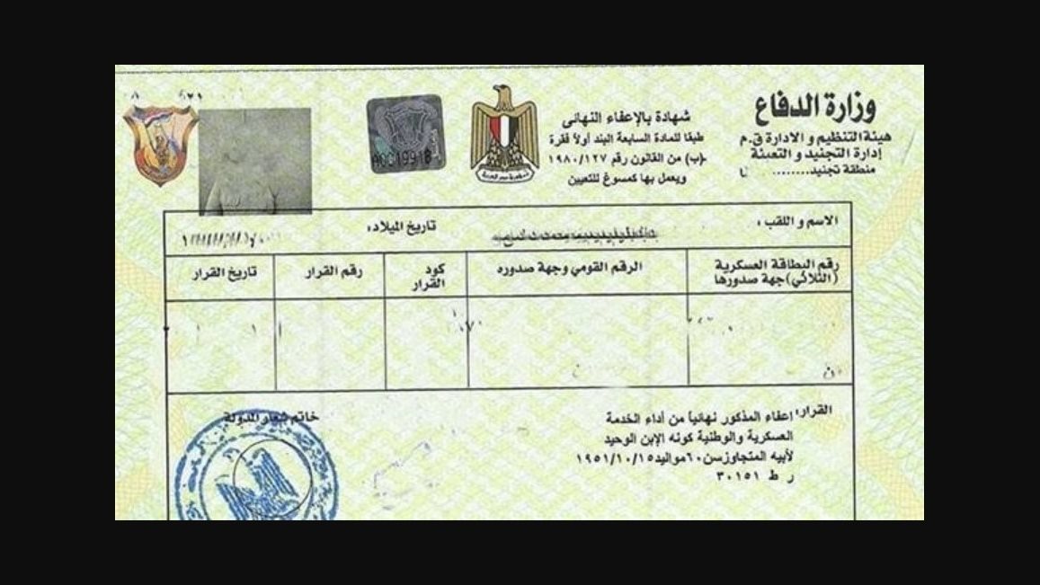 - بموجب القانون المصري، يُطلب من الحاصلين على شهادة الإعفاء المؤقت الخضوع لفحص طبي بمجرد زوال أسباب التأجيل.