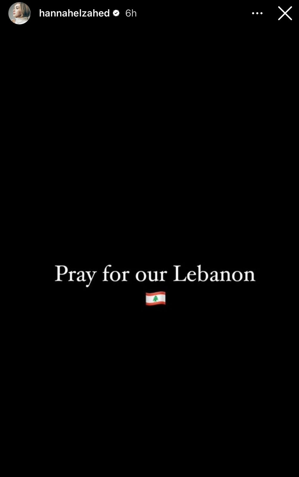 كما نشرت هنا الزاهد ستوري على صفحتها الرسمية عبر موقع تبادل الصور والفيديوهات "إنستجرام" وعلقت قائلة : "صلوا من أجل لبنان" .