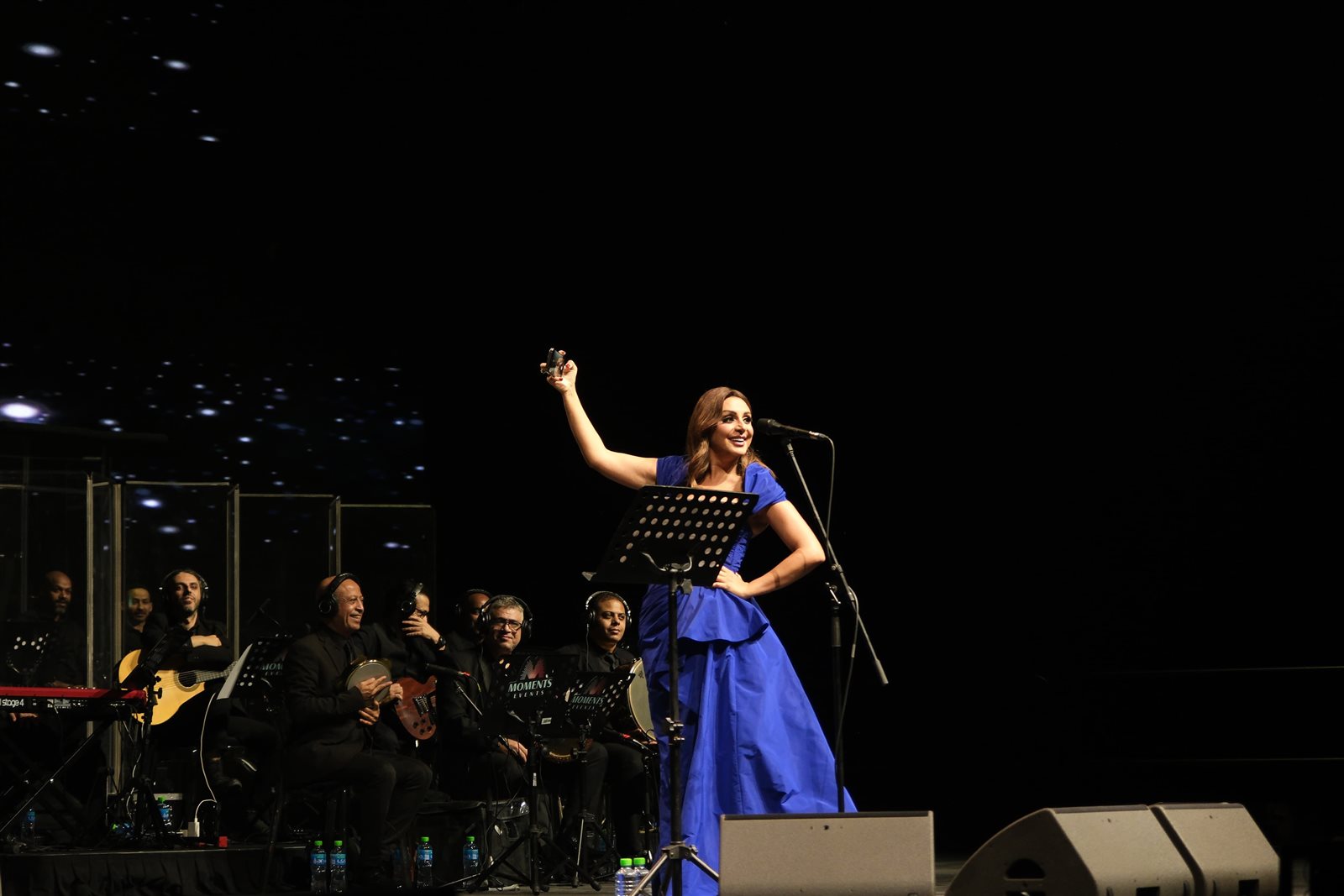 وتخلل الحفل قيام أنغام بالتقاط صورة بطريقة ال "سيلفي" مع الجمهور تعبيرا عن سعادتها باندماجهم مع أغانيها.