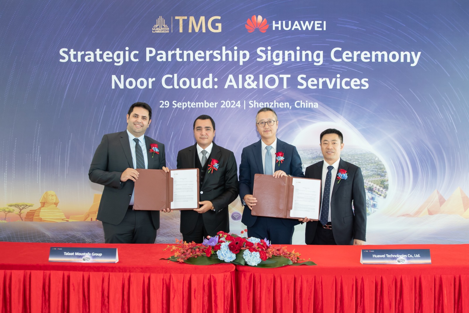 وقعت شركة هواوي، لحلول تكنولوجيا المعلومات والاتصالات، مع مجموعة طلعت مصطفى (TMG)، اتفاقية للتعاون في بناء تكنولوجيا السحابية المتطورة المدعومة بالذكاء الاصطناعي في مشروع مدينة نور، وذلك لأول مرة في السوق المصرية.