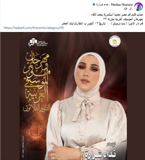 نداء شرارة تروج لحفلها بمهرجان الموسيقى العربية (صورة)