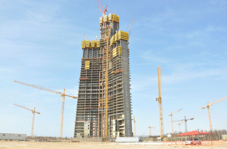 عند توقف العمل بحلول نهاية 2017 وصل ارتفاع البناء إلى 252 متراً.